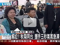 秋菊同臺 握手三秒氣氛急凍 圖片來源:臺灣《中國時報》