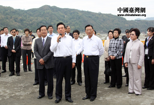 12月24日上午,海協(xié)會(huì)會(huì)長(zhǎng)陳云林一行在臺(tái)灣海基會(huì)董事長(zhǎng)江丙坤陪同下到南投水里新山村壽山橋“莫拉克”風(fēng)災(zāi)災(zāi)區(qū)進(jìn)行參訪。(中國(guó)臺(tái)灣網(wǎng) 李徽 攝)