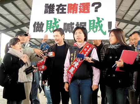 國民黨秘書長金溥聰(左3)昨替黨籍候選人陳麗玲(右2)站臺。金請民進黨主席蔡英文共同面對兩黨都曾發(fā)生的賄選問題。圖片來源:臺灣《中國時報》
