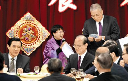 國民黨舉辦年終尾牙,以辦桌的方式在黨部席開40桌,馬英九、吳敦義輪流上臺抽獎,吳敦義還當場拿出現(xiàn)鈔8000元加碼。來源:臺灣《中國時報》