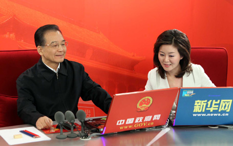2月27日,中共中央政治局常委、國務院總理溫家寶進入中國政府網訪談室。他將在這里接受中國政府網、新華網聯合專訪,與廣大網友在線交流。新華社記者馬占成攝