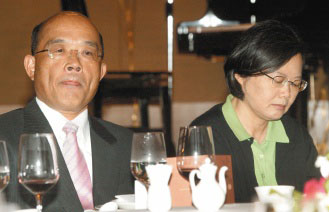 蘇貞昌蔡英文兩人昨天同時出席活動,但甚少交談,氣氛有點尷尬。圖片來源:臺灣《聯合報》