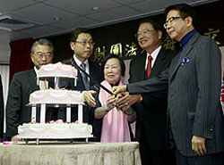 海基會19周年慶典,江丙坤、辜嚴(yán)倬云等切蛋糕。(圖:臺灣《中央日報(bào)網(wǎng)絡(luò)版》)