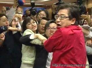 邱議瑩掌摑李慶華后雙方發生拉扯。 圖片來源:臺灣“今日新聞”