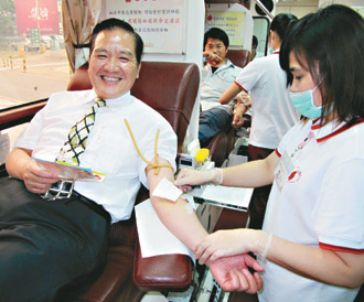 中國臺灣網(wǎng)5月6日消息 據(jù)臺灣《聯(lián)合報》報道,臺灣新竹捐血中心昨天在國賓飯店表揚快樂捐血族和熱心募血團體,新竹市長許明財開心地打破自己的捐血紀錄,達到102次;桃園、新竹、苗栗地區(qū)首位捐血逾千次的是姚文雄,還有對捐血姊弟檔劉嘉惠和劉家郎。