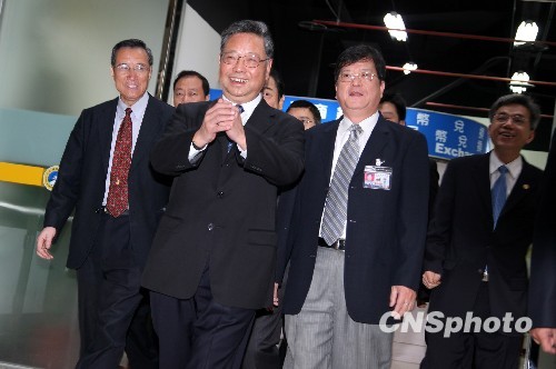 5月5日,中共福建省委副書記、省長黃小晶搭乘廈航8009加班機抵達臺北松山機場,展開為期6天的參訪、交流。黃小晶此行主要為“走親訪友做生意”——看望老朋友,增進新了解,探討新合作。圖為黃小晶步入松山機場第二航廈入境大堂,拱手向歡迎人群及記者致意。 中新社發 董會峰 攝