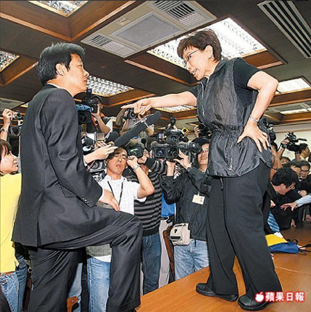 國民黨籍民意代表洪秀柱(右)與民進黨籍民代賴清德(左)互嗆。