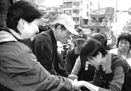 手、腰受了傷,咬咬牙或許還能堅持下來,但有時候選舉是要拿命豁出去的。2006年底,臺中市長胡志強偕夫人邵曉鈴赴高雄為國民黨籍市長候選人黃俊英造勢,誰想返回臺中時發(fā)生嚴(yán)重車禍,邵曉鈴雖然最后闖過鬼門關(guān),但左臂被截肢,腦部也傷得很厲害。而臺灣政壇另一起轟動一時的車禍,當(dāng)然要算1985年陳水扁妻子吳淑珍遭遇的車禍。當(dāng)時陳水扁參選臺南縣長失利,在謝票過程途中,吳淑珍遭貨車撞傷,導(dǎo)致下半身永久癱瘓,胸部以下喪失知覺。而“立委”選舉中,候選人遭黑道上門要挾、收到子彈等事件也常有發(fā)生。