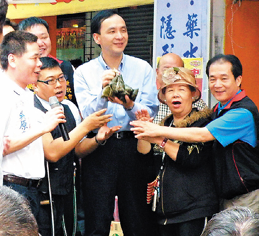 朱立倫參加殘障人士團(tuán)體端午包粽活動,受到熱烈歡迎。(圖:臺灣《聯(lián)合報(bào)》)