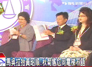 據(jù)臺(tái)灣TVBS電視臺(tái)報(bào)道,大高雄市長(zhǎng)選舉,綠營(yíng)陳菊、楊秋興爆發(fā)內(nèi)訌,2人連坐同一部電梯,也絲毫沒有互動(dòng),相敬如冰。