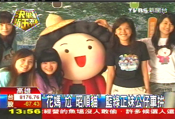 據報道,大高雄市長參選人爭相推出選舉商品,陳菊推出的公仔形象是“花媽”,她邀請了年僅21歲的美眉設計師何巧薇為自己助選。這位高達171公分的長腿美女把陳菊平面的“花媽”變成3D立體形象,并設計出從磁鐵到手機吊飾7種花媽商品;她還在今(11)日率領陳菊的“正妹競選團隊”,身穿清一色“花媽”T恤自信走秀,博得了不少喝彩。