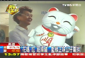 中國臺灣網10月11日消息 據臺灣TVBS電視臺報道,如果您覺得“五都”選戰只是唇槍舌戰的激烈場面的無限疊加和一大堆讓人枯燥的政治語言,那您對其的理解就有點狹隘了。為了博得選民的支持,參選人可謂使盡招數,“軟硬兼施”。近日,高雄市長參選人陳菊和黃昭順為了爭奪年輕人選票,都費盡心思的制作了可愛新穎的公仔(玩具)和推出漂亮美眉輔選,來了一手“軟的”,展示了另樣選舉風情。