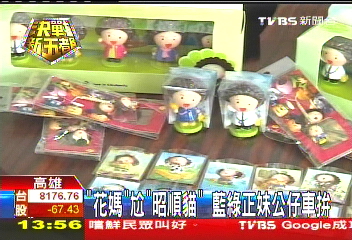 黃昭順“正妹競選團隊”和“昭順貓”公仔。來源:臺灣TVBS電視臺