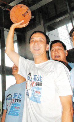 朱立倫上午在競選總部與國民黨籍議員候選人舉行三對三籃球賽,呼應投“藍”主題,他也開出了一張青年支票,承諾當選之后,將在新北市全市普設籃球場。他說,籃球是小區年輕人運動、也是大家活動,非常重要的場所,設置的小區籃球場,將由市府檢查維持籃框標準、籃網完整、夜間照明方便,讓大家隨時能在小區運動,保持身體健康。