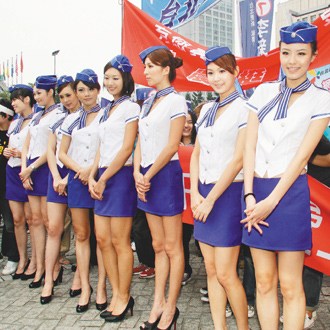 “為臺北而走”游行嘉年華,還請來名模巧扮空姐,臺北市長郝龍斌也穿上機師服裝,營造“臺北起飛”的意象。
