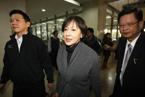 臺(tái)北地檢署偵辦臺(tái)灣高鐵案,8日以關(guān)系人身份傳喚前高鐵公司董事長殷琪(中),說明高鐵當(dāng)年發(fā)行特別股等過程。 圖片來源:“中央社”