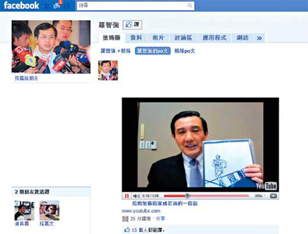 馬英九的facebook明年上線,他19日在羅智強的facebook上放視頻“試水溫”。 來源:臺灣《聯合報》