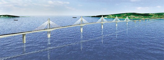 據臺灣《中國時報》報道,臺灣最長的跨海大橋“金門大橋”,9日由馬英九、“行政院長”吳敦義親自動土開工,預定2016年6月完工通車。馬英九期許這座造價逾75億元的大橋,在“七分觀光,三分交通”的興建概念下,成為吸引兩岸觀光客的海上新地標。