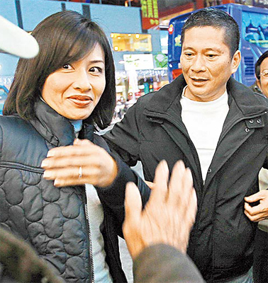 邱議瑩、李永得(右)兩人前天在高雄被媒體拍到,邱尷尬閃鏡頭。 來源:臺灣媒體