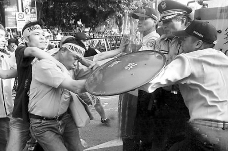 大陸海協會會長陳云林取消臺南行,“獨派”團體揚言24日在高雄準備隨時“攔路、堵人”。(中評社 張啟芳攝)