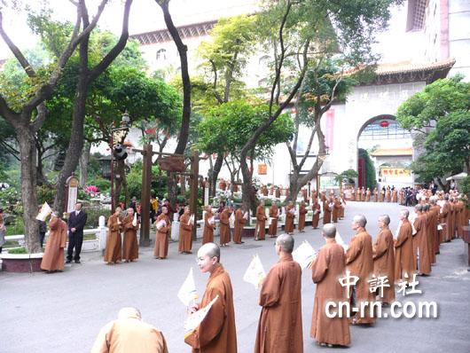 海協會長陳云林24日下午赴佛光山拜見星云大師,佛光山以最高規格迎接陳云林的到來,上千名法師和信徒從半山腰就開始列隊歡迎,場面壯觀。