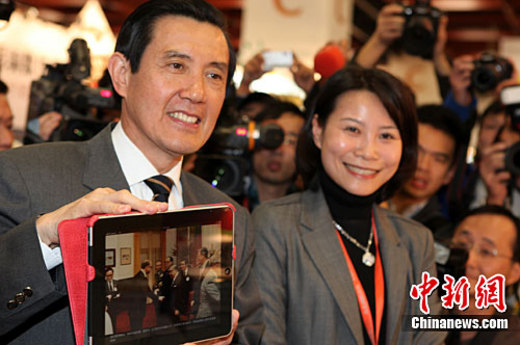 資料圖:2月9日,臺灣當局領導人馬英九逛“第十九屆臺北國際書展”。中新社記者 董會峰 攝