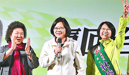 蔡英文(中)為民進黨籍“立委”參選人林岱樺站臺。圖片來自網(wǎng)絡(luò)