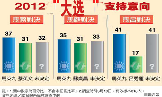 2012“大選”最新民調。圖片來源:臺灣《聯合報》