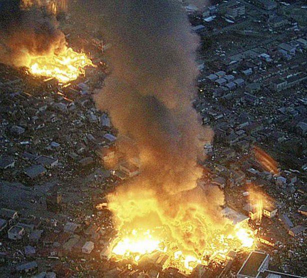 北京時間3月11日13點46分,日本本州島附近海域發生里氏8.9級地震,震中位于宮城縣以東太平洋海域,震源深度10公里,東京有強烈震感。圖為3月11日,日本仙臺宮城縣一家醫院的護士疏散病患。圖為3月11日,日本巖手縣的建筑物因地震引發大火。