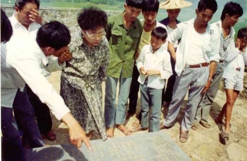 一九九○年臺灣開放居民到大陸探親的第二年,時任臺灣桃園縣縣長的呂秀蓮難抑思鄉之情,以婦女會的名義,捷足先登,回到田中村祭祖尋根,受到了鄉親們的熱情歡迎和接待。當時,呂秀蓮曾撫摸龍潭樓內一口八米深的古井,深情地說:“我要喝一口故鄉的井水,這叫飲水思源。”圖為呂秀蓮在大陸祖祠察看兩岸呂氏宗親往來的記事碑(資料照片)