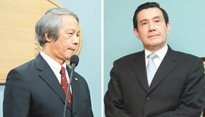 賴浩敏(左)向“大法官”審薦小組推薦邵燕玲,自認思慮不周,1日向馬英九、蕭萬長及島內民眾致歉。馬英九(右)親自出面道歉,神情凝重。 來源:臺灣《聯合報》