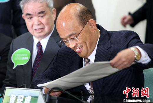 3月23日上午,蘇貞昌(右)來到臺北民進黨中央黨部,領(lǐng)表登記參加2012臺灣當(dāng)局領(lǐng)導(dǎo)人選舉民進黨黨內(nèi)初選。中新社發(fā) 董會峰 攝