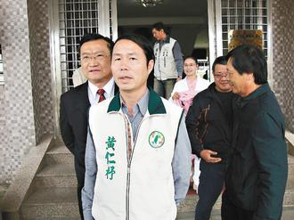 民進黨“立委”黃仁杼(左二)、臺北市議員江志銘(左一)與電臺主持人昨天到北監探扁。圖片來源:臺灣《聯合報》