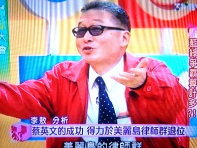 據(jù)報(bào)道,李敖上鏡評論2012年臺灣地區(qū)領(lǐng)導(dǎo)人選舉,認(rèn)為臺灣有機(jī)會(huì)出現(xiàn)女性地區(qū)領(lǐng)導(dǎo)人,蔡英文是新的形象牌,像是“經(jīng)期不調(diào)的女學(xué)生”,有機(jī)會(huì)勝出。李敖此話一出,嚇壞節(jié)目現(xiàn)場一堆名嘴,之后李敖把“經(jīng)期不調(diào)的女學(xué)生”修正為“清純的女學(xué)生”。李敖雖然肯定蔡英文是形象牌,但也很不留情的說,蔡英文是偷走民進(jìn)黨的賊,從既得利益者,也就是美麗島的律師群手中偷走民進(jìn)黨,所以是賊;而且還是“道德的摧毀者”。