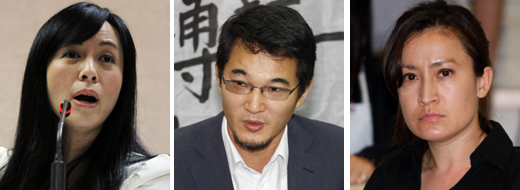 陳瑩(左)、劉建國(中)與民進黨智庫副執行長蕭美琴(右)傳出三角戀情。(圖片來源:臺灣聯合新聞網)