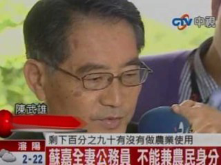 臺當局農業主管部門負責人陳武雄表示,如果九成的土地沒有作為農業用那就不能稱為農舍。(圖片來源:臺灣“今日新聞網”)