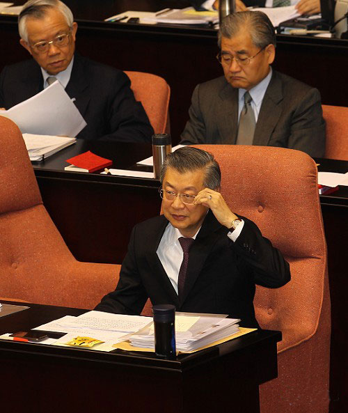 臺當(dāng)局“行政院長”陳沖(前)順利上臺詢答。圖片來自臺媒