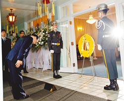 國民黨副主席、蔣經(jīng)國之子蔣孝嚴(yán)前往桃園頭寮謁陵。 來源:臺灣《中國時報》