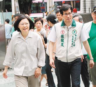 民進黨昨日舉行“四合一”選舉,前主席蔡英文(左)一早由新北市主委候選人羅致政(右)陪同投票。(圖片來源:臺灣《聯合報》)