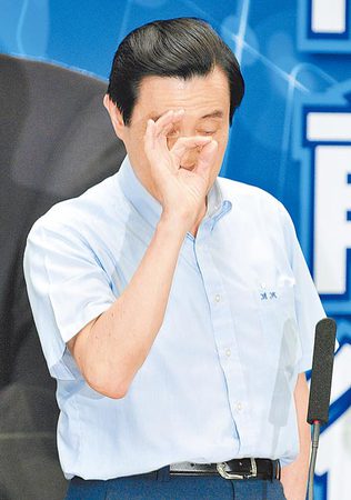 臺“立法院”將在下周處理進口“美牛”案,馬英九7日專程出席國民黨“立院”黨團大會,試圖與黨籍“立委”溝通,在說明結束后,比出OK手勢,期待法案順利通過。(圖片來源:臺灣《中國時報》)