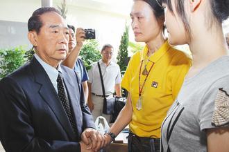 親民黨主席宋楚瑜(左)昨日慰問昔日隨扈賈圣行的家屬,賈妻蘇珍(右二)和女兒(右一)忍不住流下眼淚。(圖片來源:臺灣《聯(lián)合報》)