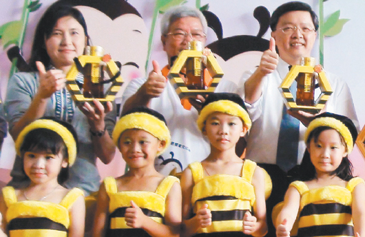 高雄市副市長陳啟昱(后排右一)傳出與民政局長曾姿雯(后排左一)已登記結婚,圖為兩人過去出席蜂蜜文化節活動。(圖片來自臺灣《聯合報》)