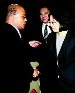 民進黨主席蘇貞昌(左)、前主席蔡英文(右)兩 人互拼下鄉(xiāng)、走基層、主導(dǎo)議題,黨內(nèi)形容是“兩個太陽”的競爭。圖片來自臺灣《聯(lián)合報》