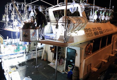 中華保釣協會計劃將媽祖神像送至釣魚島,24日凌晨搭乘漁船從瑞芳深澳漁港出發前,臺當局“海巡署”檢驗相關報關程序。圖自臺媒