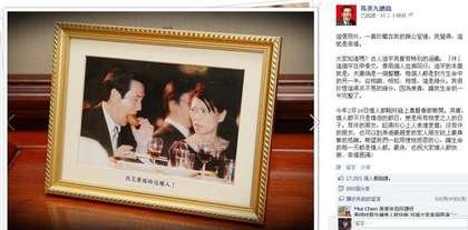 馬英九說,“這張照片,一直珍藏在我的辦公室里,我覺得,這就是幸福。”他認為,“伴”字像2個人并肩同行,造字本意為夫妻是1個整體,每個人都是對方生命中的另一半,從相識、相知、相惜,即是緣分。