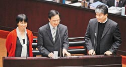 針對(duì)“通奸除罪化”議題,臺(tái)當(dāng)局“文化部長”龍應(yīng)臺(tái)(左)15日在“立法院”答詢中表示支持,“行政院長”江宜樺(中)認(rèn)為可以討論,“內(nèi)政部長”李鴻源(右)則顯得有些尷尬地表示,他沒個(gè)人看法。(來源:臺(tái)灣《中國時(shí)報(bào)》)