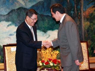 馬英九(右)2日在辦公室接見蕭萬長(左)。圖片來自臺灣媒體