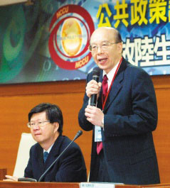 開放陸生來臺對臺灣教育、文化、經(jīng)濟(jì)的沖擊研討會,昨天在政大公企中心舉行,臺大校長李嗣涔(右)、政大校長吳思華(左)都參加會議,山東大學(xué)副校長樊麗明會中表示,獎學(xué)金將決定臺灣能找到什么樣的學(xué)生。圖片來源:臺灣《聯(lián)合報》