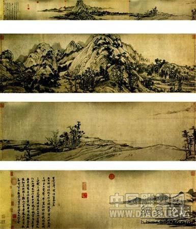 許多年來,兩岸書家和有心之士多方努力,希望有朝一日能『破鏡重圓』重新拼合此畫。畫的后段(長段)從吳家流散后,曾經歷多人收藏,于清乾隆十一年流人清宮。有意思的是,號稱風雅的乾隆皇帝居然不識寶,認定它是贗品,而對另一卷他人臨摹的《富春山居圖》大加賞贊,又是題跋又是鈐印。但也幸而如此,那卷真跡倒借此得以“全璧”,后在解放前夕運往臺灣,歸臺北故宮博物院收藏。