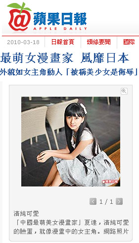 臺灣“今日新聞網”稱夏達比漫畫少女還漫畫少女。